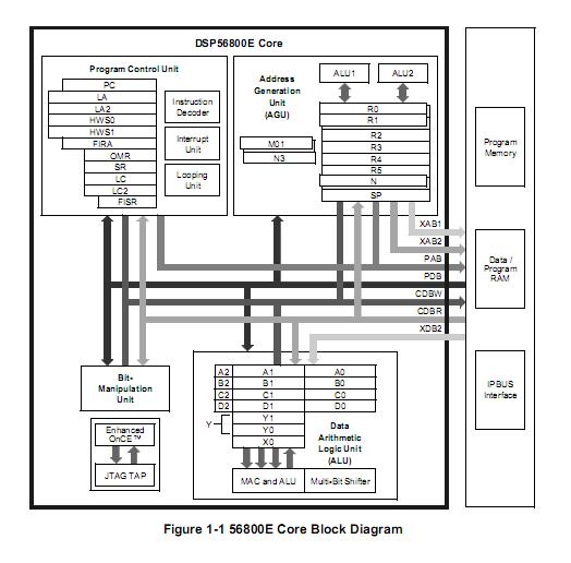 Features: (1)Efficient 16-bit 56800E family Digital Signal Controller (DSC)engine with dual Harvard architecture; (2)As many as 32 Million Instructions Per Second (MIPS) at 32MHz core frequency; (3)Single-cycle 16 × 16-bit parallel Multiplier-Accumulator (MAC); (4)Four 36-bit accumulators, including extension bits; (5)32-bit arithmetic and logic multi-bit shifter; (6)Parallel instruction set with unique DSP addressing modes; (7)Hardware DO and REP loops; (8)Three internal address buses; (9)Four internal data buses; (10)Instruction set supports both DSP and controller functions; (11)Controller-style addressing modes and instructions for compact code; (12)Efficient C compiler and local variable support; (13)Software subroutine and interrupt stack with depth limited only by memory; (14)JTAG/Enhanced On-Chip Emulation (OnCE) for unobtrusive,processor speed-independent, real-time debugging.